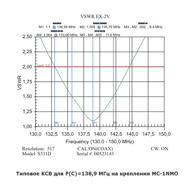 | КСВ на резонансной частоте | < 1,5:1 | |