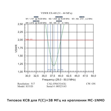 | КСВ на резонансной частоте | < 1,5:1 | |