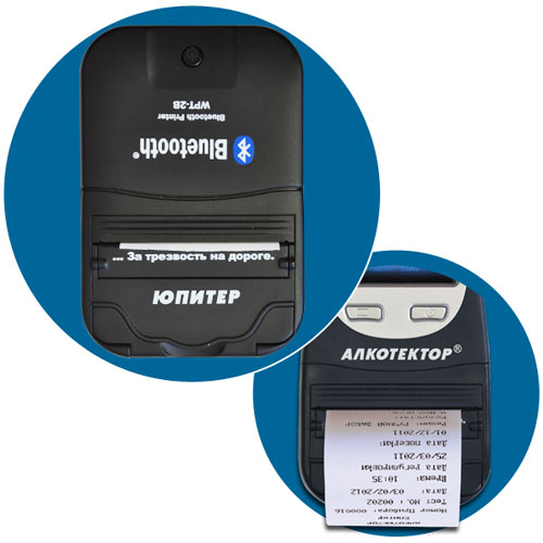 • Термопринтер. «Юпитер-П» — поставляется с внешним принтером, который при необходимости можно присоединить к корпусу алкометра