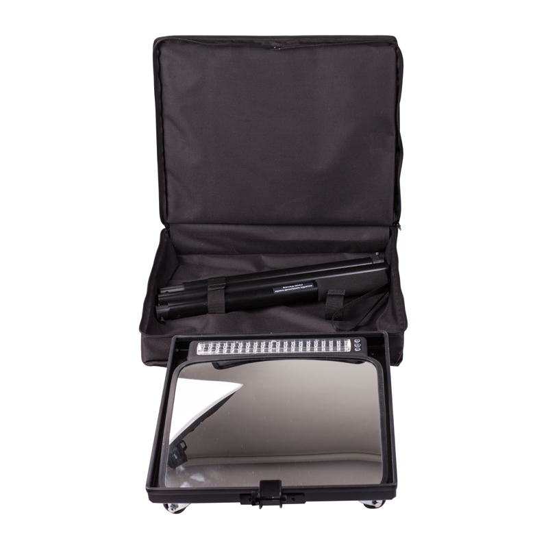 Подкатное сферическое зеркало для досмотра днищ автомобилей 330 мм х 290 мм, штанга 1250 мм, светодиодная подсветка (5 часов работы). Сумка для укладки и переноски.