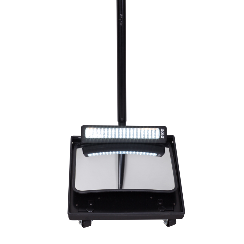 Зеркало состоит из передвижной каретки на четырех колесах с закрепленным на ней сферическим зеркалом, съемным светодиодным осветителем со ступенчатой регулируемой яркостью освещения, рукояткой-держателем. Источником питания для светодиодной подсветки служат батареи размера ААА в количестве 6 штук. Длительность беспрерывной работы освещения составляет более 6 часов.