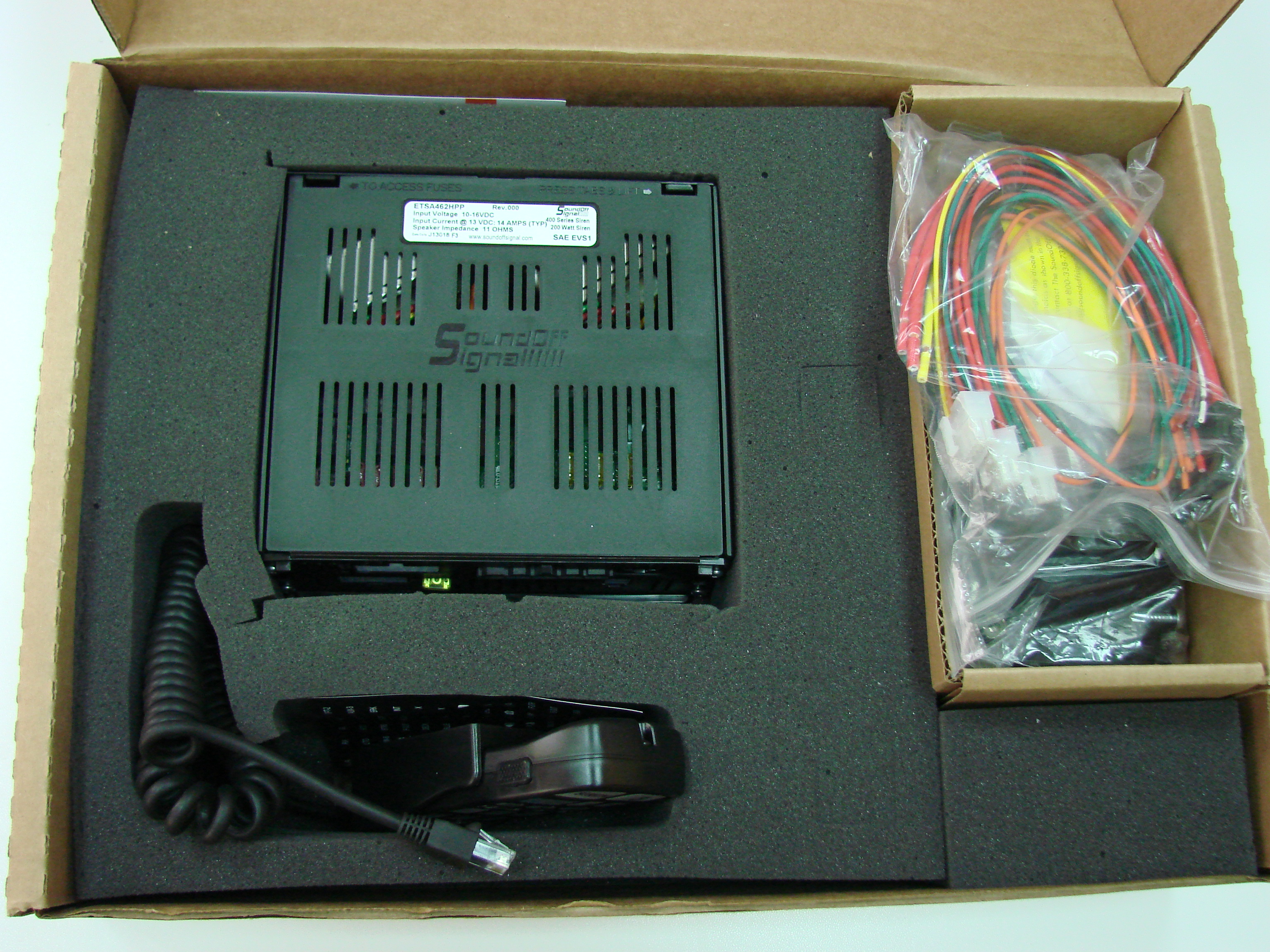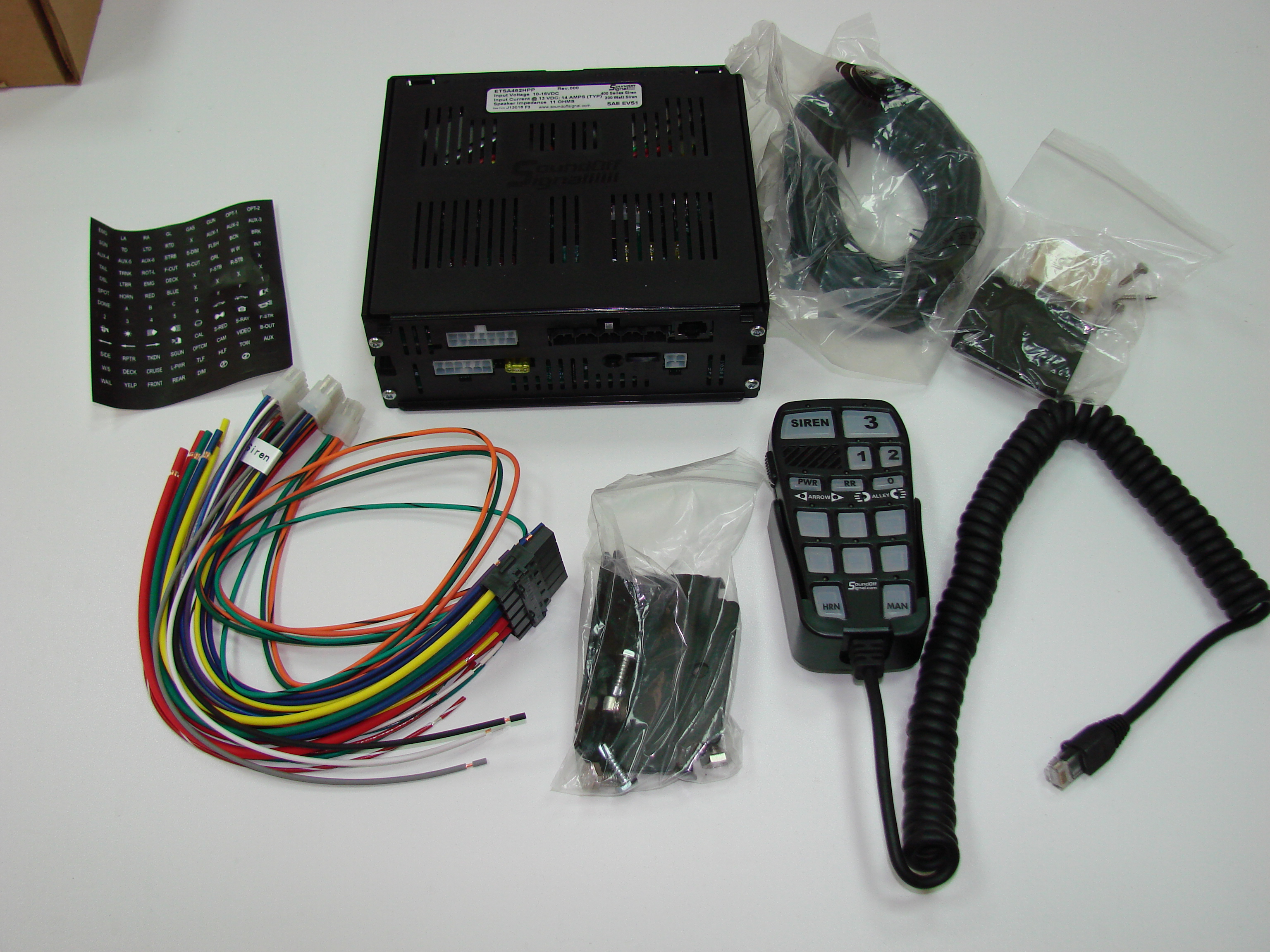 Блок СГУ ETSA462HPP (200 Вт.) с функцией управления световыми сигнальными устройствами с единого пульта-микрофона, 8 тонов сирены, 200 Вт. Подключение двух динамиков.