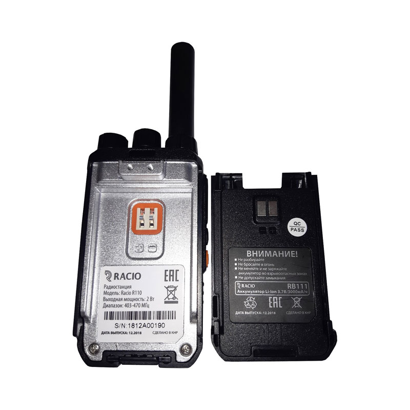 Рация Racio R110 UHF, акб 3000 мАч, ЗУ micro-USB