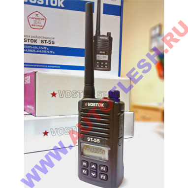 Реализация в модели PTT ID, DTMF, разноса и реверса частот заинтересуют профессиональных пользователей. Эти функции дают широкие возможности по применению VOSTOK ST-55 в уже существующих сетях радиосвязи.