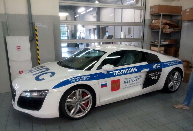 - Нанесённые декоративные полосы и знаки обеспечивают мгновенное визуальное выделение автомобиля ГИБДД из общего потока
